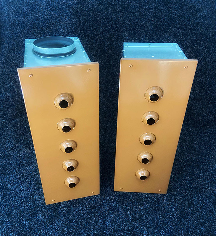 Воздухораспределители полностью изготавливаются из листовой оцинкованной стали. Изготовление сопел из стали позволяет использовать изделия при повышенном температурном режиме. Покраска осуществляется порошковым методом в цвета по международной шкале RAL, по умолчанию в белый цвет RAL 9016. В квадратных и прямоугольных воздухораспределителях окрашивается только лицевая панель, камера поставляется без покрытия. Круглые воздухораспределители окрашиваются полностью.