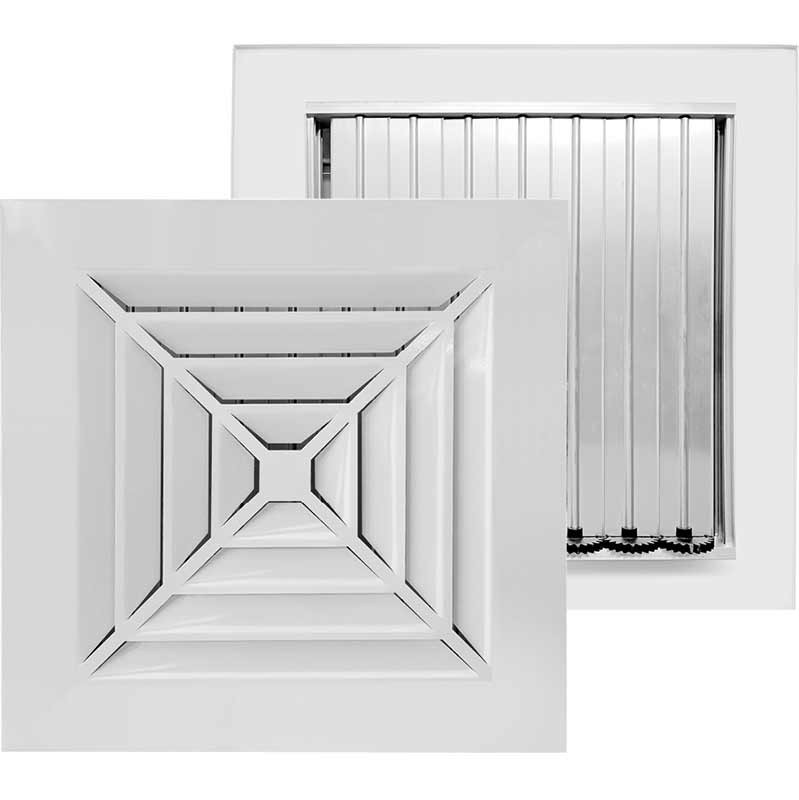 Стальная потолочная решетка 4ПР-С-Р предназначена для распределения воздушного потока внутри помещения в четыре стороны и регулирования объема поступающего в помещение воздуха. Как правило, потолочные решетки устанавливаются в потолок типа Армстронг, размеры решетки соответствуют размеру потолочной ячейки.