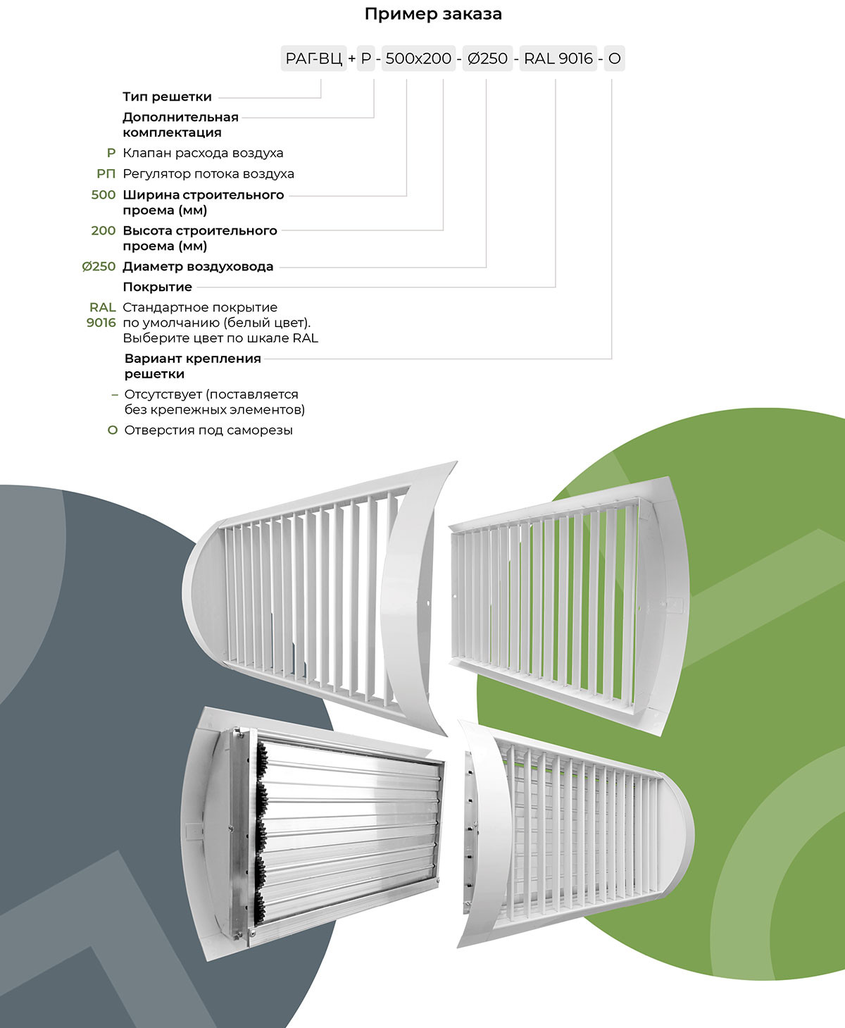 - возможность комплектации клапаном расхода воздуха (КРВ) – РАГ-ВЦ+Р, или регулятором потока – РАГ-ВЦ+РП.
